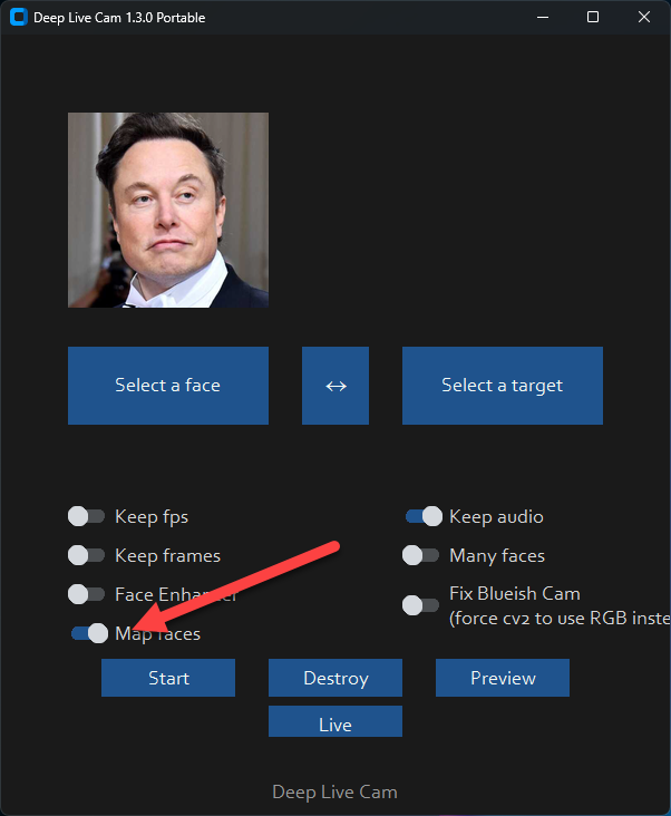Note: In case you want to change your face, just select another picture, the preview mode will then restart (so just wait a bit).