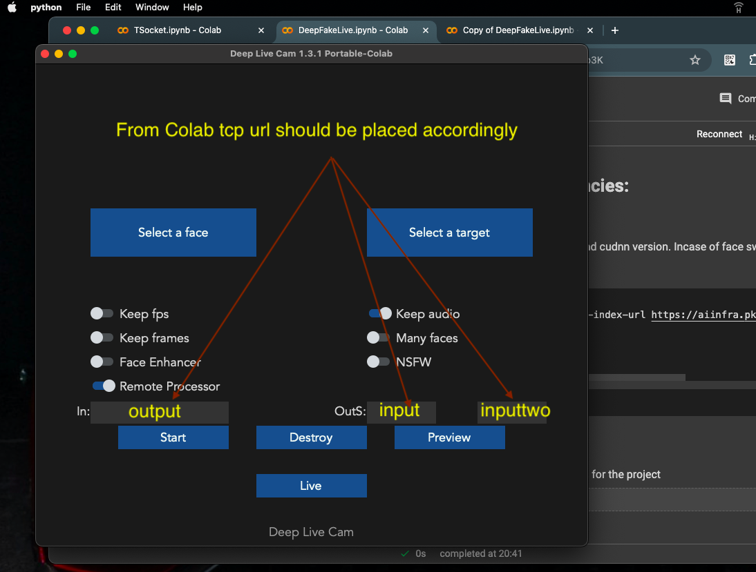 Upload the colab file in /google-colab/DeepLive_Google_Colab.ipynb to your google colab